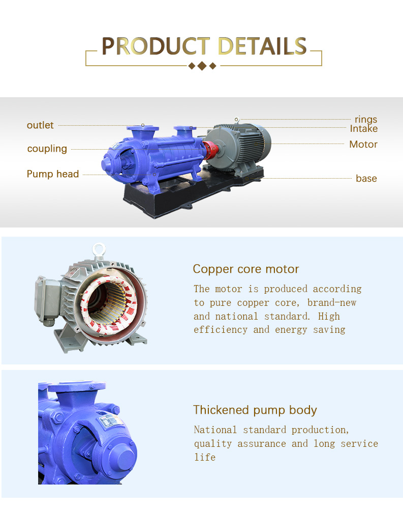 Type D and DG pumps are horizontal multistage centrifugal pumps. It is suitable for transporting clean water (impurity