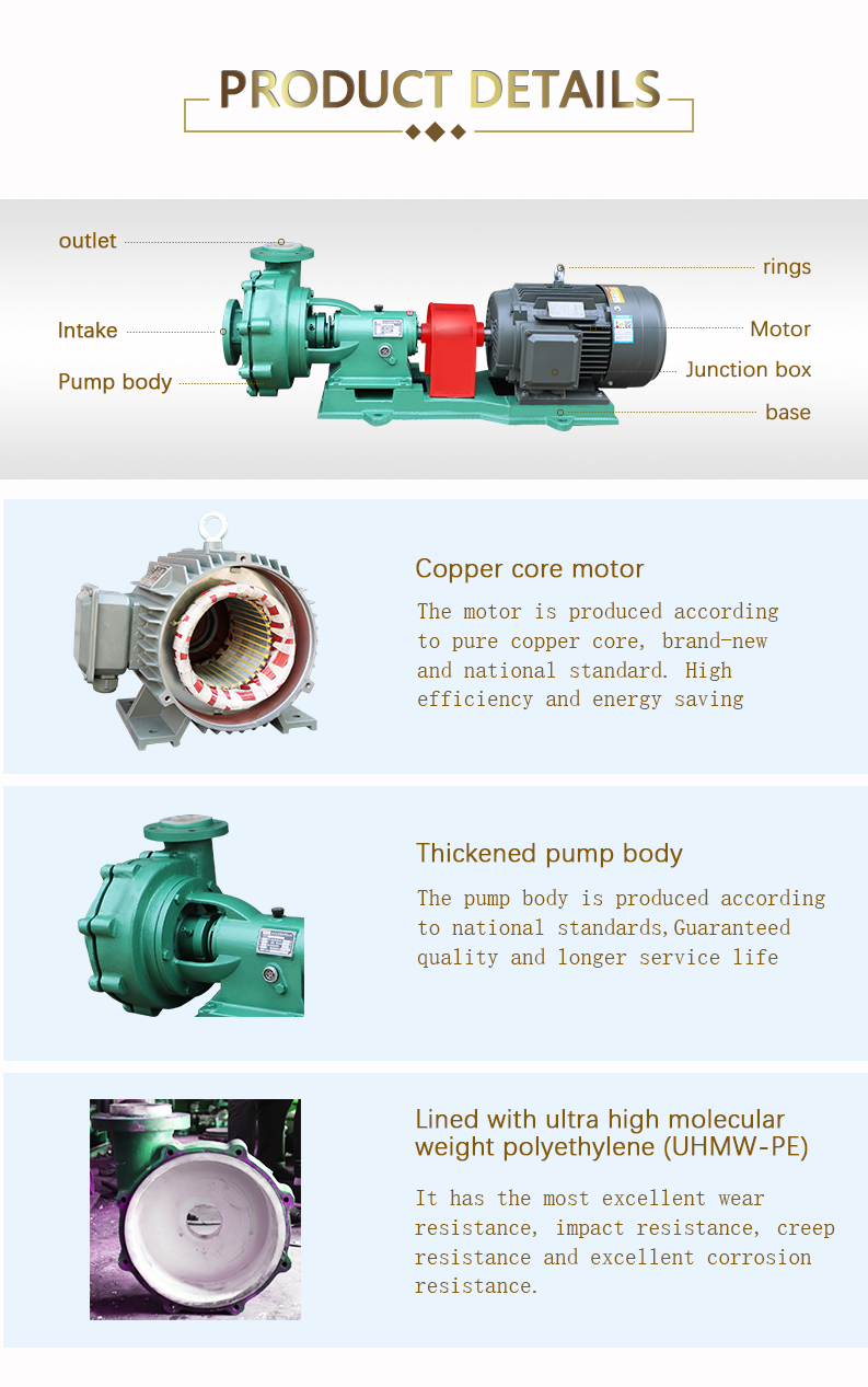 have corrosion resistance. The structural design is cantilever front open type and the impeller is semi open
